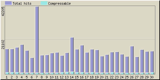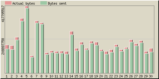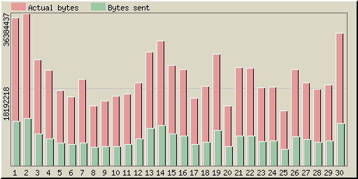 | Day | Hits | Actual bytes | Bytes sent | Saved bytes | Hits | Actual bytes | Bytes sent | Saved bytes |