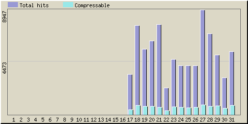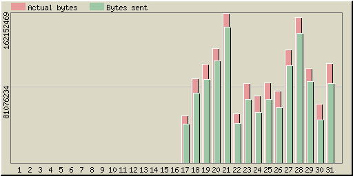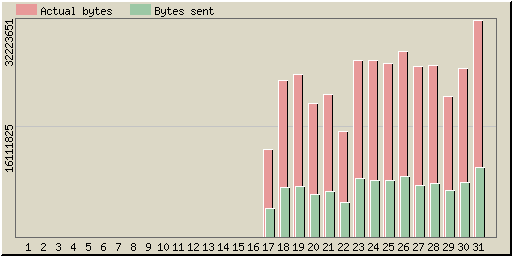 | Day | Hits | Actual bytes | Bytes sent | Saved bytes | Hits | Actual bytes | Bytes sent | Saved bytes |