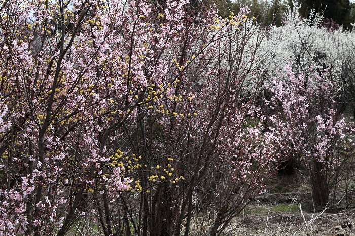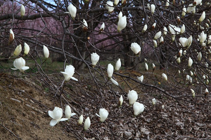 4/4、郡山市中田町の花木団地を訪れる。東海桜、もくれんは今一つ早かったが、梅、サンシュなどはすでに満開