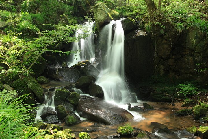 9/8、ダリア園の後すぐ近くにある雷滝へ、ここは日の光が差し込んでくると飛沫をくっきりと照らし出す。これが魅力だ。 その後、これも近くの不動滝へ、ここは周りの杉を切ってしまったため、日の光が当たるとコントラストが強すぎてしまう。 最後の1枚は、空港近くのスポーツ広場、蕎麦畑の中のジャンボジェットがくっきり。