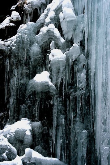 2008/2/19、写友と栃木県那須塩原市のスッカン沢を訪れる。前回と違い今回は遊歩道にも雪が積もり、平らなところを歩く時は さほど問題にはならないが、坂道となるととても滑りやすい状態の中、片道約2Kmの道を氷柱を求めて進んだ。 なお今回は枚数が多いので2ページにわたり掲載します。1ページ目は雄飛の滝の下流の写真。