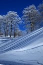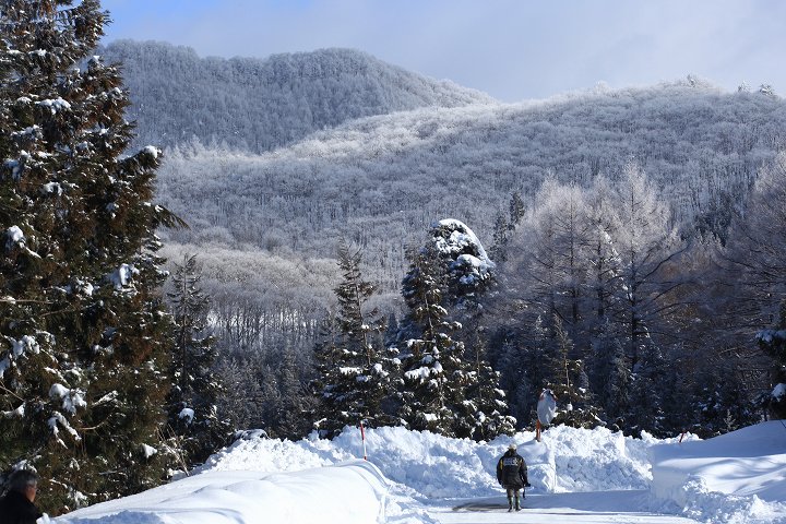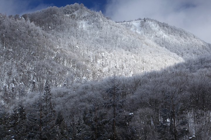 2/16、大塩温泉から桧原本村までの細い峠道、桧原湖の細野から桧原までの間の湖沿いは、積雪や道路が狭いこともあって 冬季間通行ができないため、冬の間は重要な交通路になっている。 今回はこの道を通ったが、大塩峠、アララギ(蘭)峠は標高も高いことがあって冬の時期は比較的霧氷を見ることができる。 平地にいる人間にとっては冬の峠道は厳しいが、また素晴らしい景観を見ることができた。