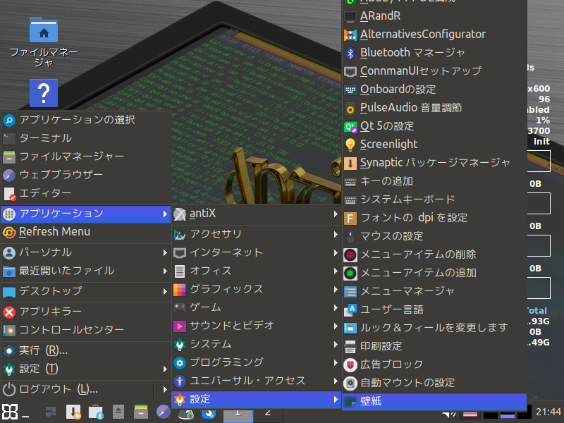軽量Linux antiX が、どういったアプリを標準アプリとして扱っているのか気になった。