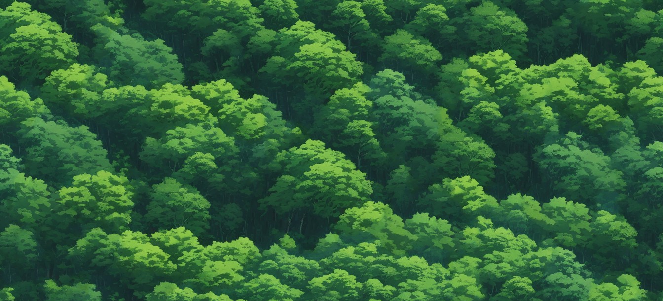 jiburi anime background art style green forests landscape from sky, Negative prompt: mountains,lake,river,sky,house,road,clouds,prairie,field,vacant land,blank space,grassland,recesses,road,path, Steps: 5, Sampler: DPM++ SDE, Schedule type: Karras, CFG scale: 2, Seed: 353034743, Size: 1344x768, Model hash: 044a031b95, Model: juggernautXL_juggXILightningByRD, Denoising strength: 0.6, Style Selector Enabled: True, Style Selector Randomize: False, Style Selector Style: base, Version: f2.0.1v1.10.1-previous-653-gc4b6fcce