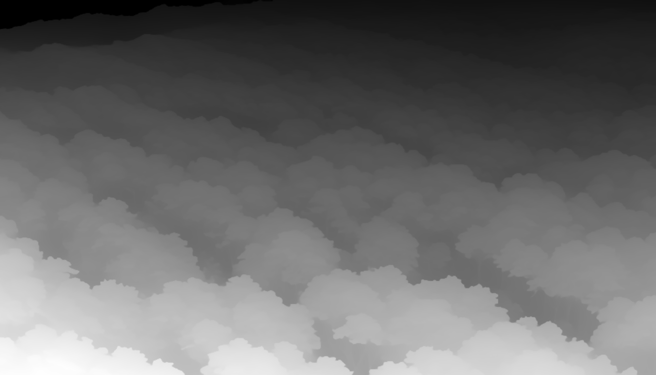 たまたま某アニメで目にした、「空を飛んでいる魔法使いの背景で流れていく森」の図を、色々なやり方で試しているけれど、今回はデプスマップ画像でそれらしくなるのかどうかを実験してみた。