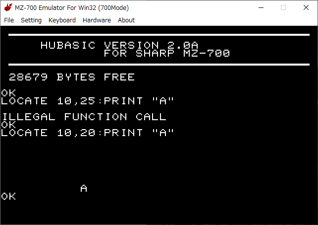 #1 [mz] MZ-700用Hu-BASICのLOCATEについて