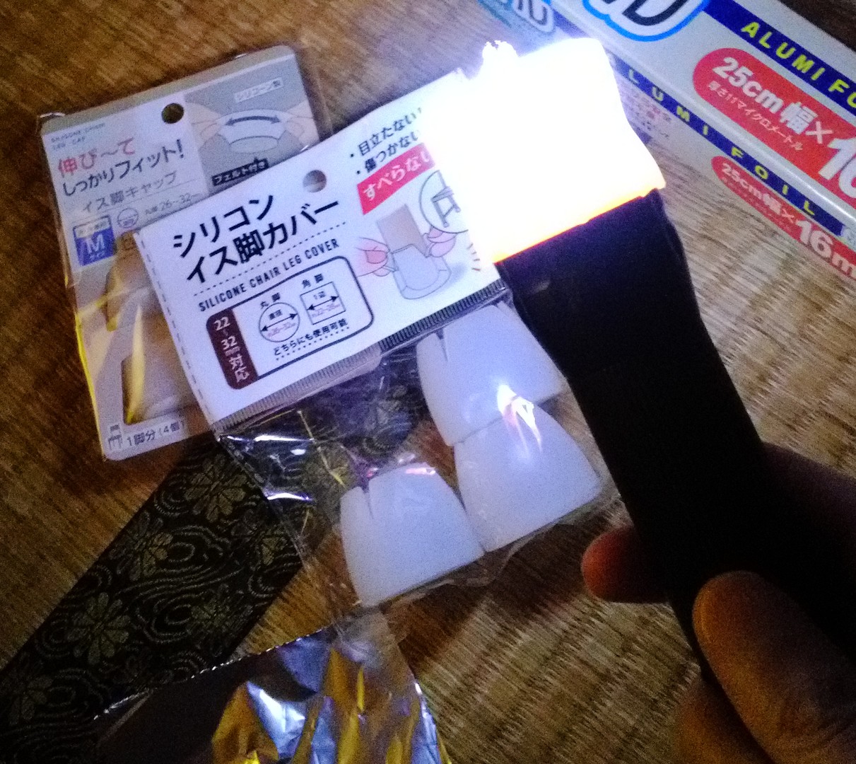 ちなみに、ボールタイプのLEDセンサライトの重さを、クッキングスケール(料理用はかり/キッチンスケール)で確認してみたけれど、単4電池 x 3本を入れた状態で、台も含めて150gだった。手持ちの超強力両面テープは、ポリエステルに貼り付けた場合 2cm で300gまでとパッケージに書いてあるので、両面テープの粘着力が本当にそのスペックを出せるのであれば、このLEDセンサライトを壁にも取り付けられるはず…。