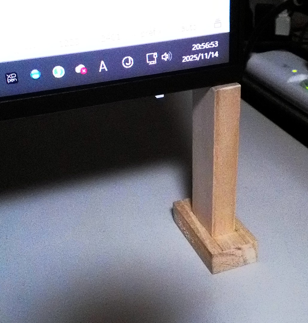 液晶パネル部分のすぐ下に、木材で足っぽいものを追加してみた。