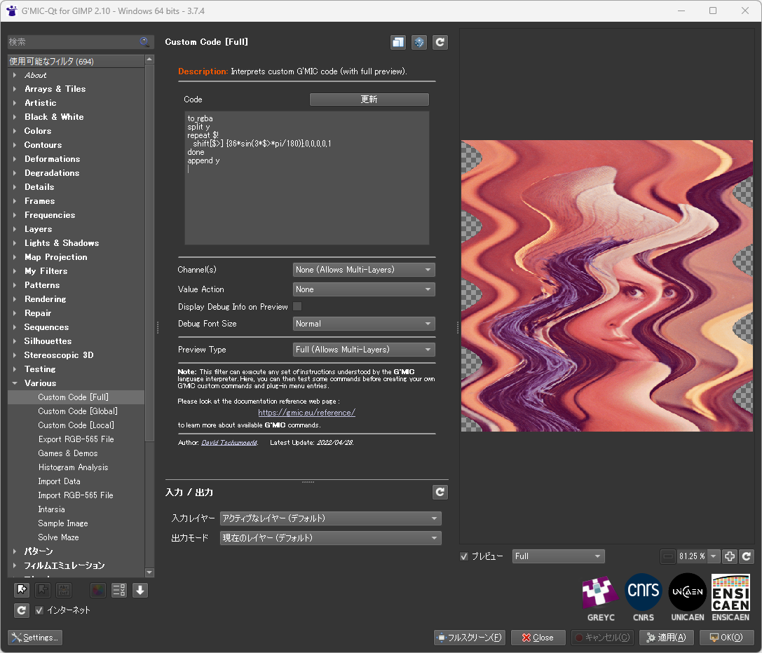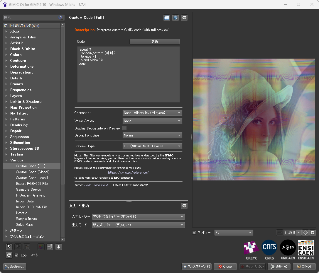 G'MIC用のフィルタを作ってみたい。作り方について勉強中。
