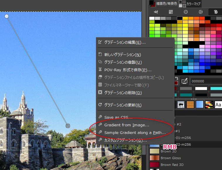 - 「Gradient from Image...」「Sample gradient along a Path...」という項目が増えている。